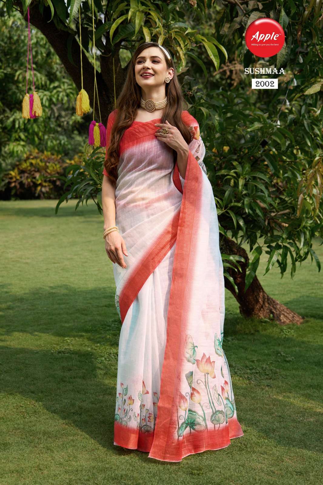 SUSHMAA VOL-20 BY APPLE 2001 TO 2008 SERIES INDIAN TRADITIONAL WEAR COLLECTION BEAUTIFUL STYLISH FANCY COLORFUL PARTY WEAR & OCCASIONAL WEAR SOFT LINEN SAREES AT WHOLESALE PRICE