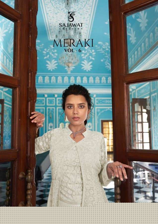 Meraki Vol-6 Nx By Sajawat Creation Beautiful Anarkali Suits Colorful Stylish Fancy Casual Wear & Ethnic Wear Faux Georgette Embroidered Dresses At Wholesale Price
