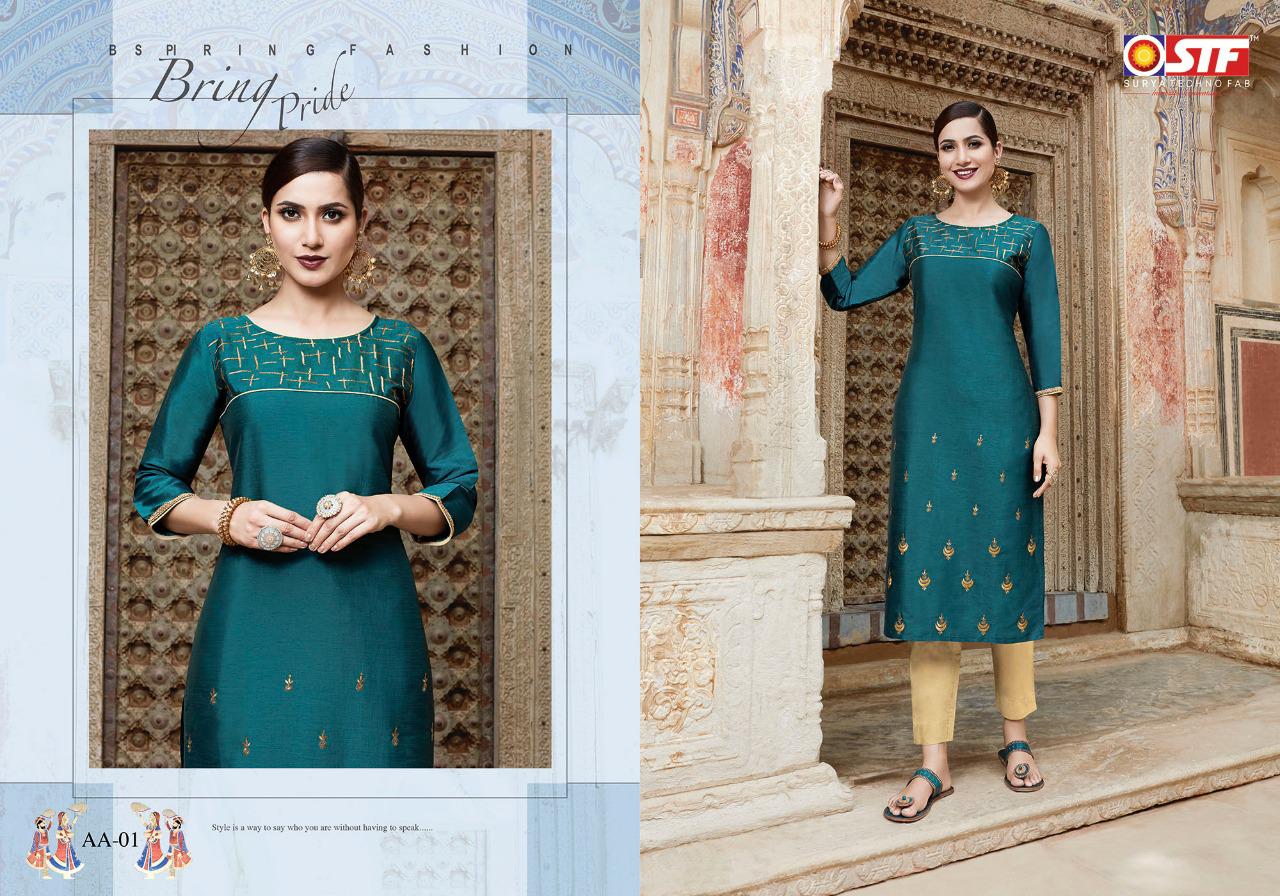 Aakruti By Surya Techno Fab 01 To 06 Series Beautiful Colorful Stylish Fancy Casual Wear & Ethnic Wear & Ready To Wear Akruti Silk With Aster Printed Kurtis At Wholesale Price
