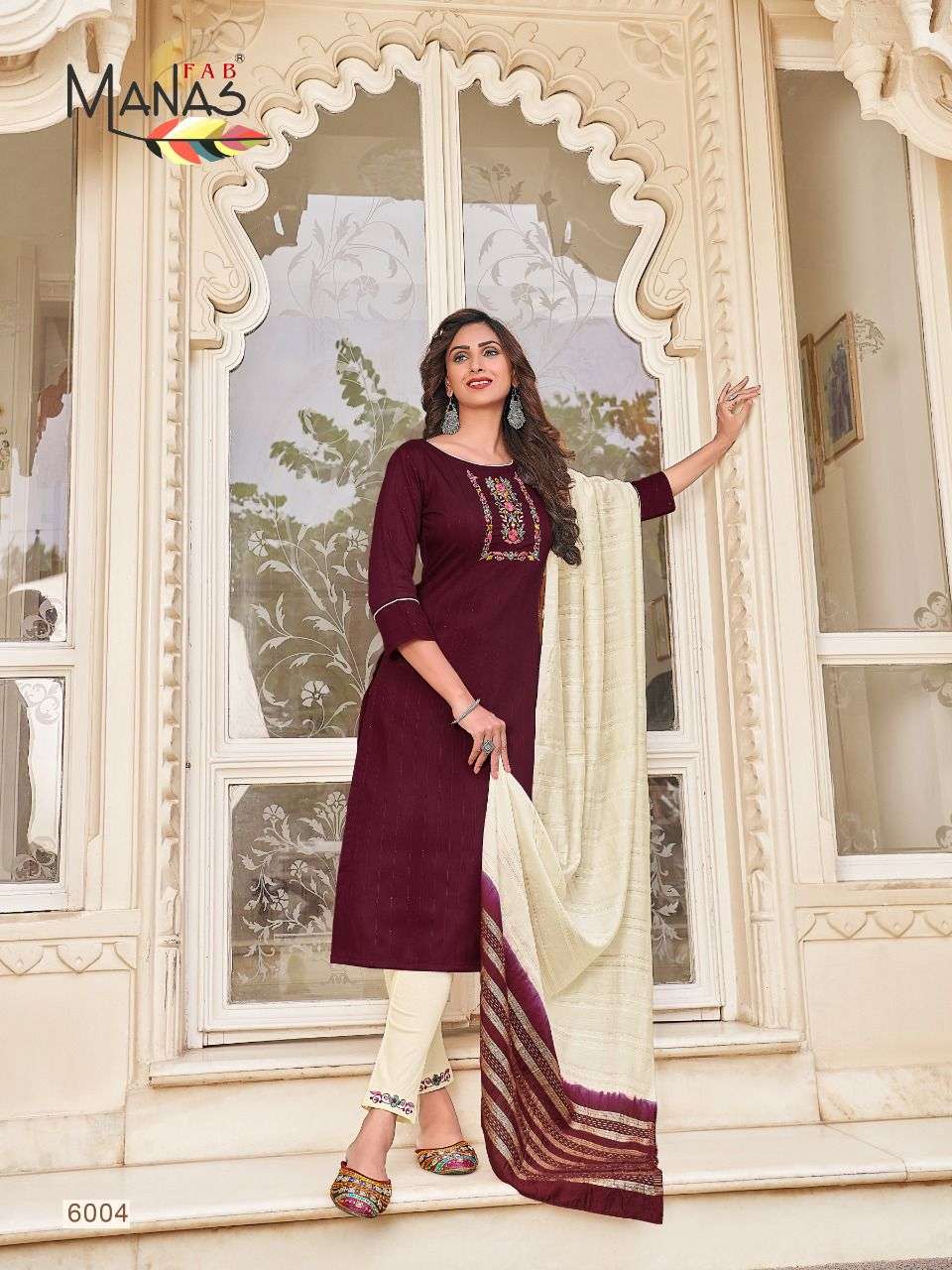 ARINA BY MANAS FAB 6001 TO 6006 SERIES BEAUTIFUL SUITS COLORFUL STYLISH FANCY CASUAL WEAR & ETHNIC WEAR FANCY WEAVING DRESSES AT WHOLESALE PRICE