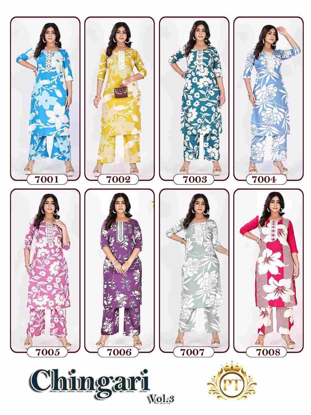 Chingari Vol-3 By Padmavati Textiles 7001 To 7008 Series Designer Stylish Fancy Colorful Beautiful Party Wear & Ethnic Wear Collection Rayon Print Kurtis With Bottom At Wholesale Price
