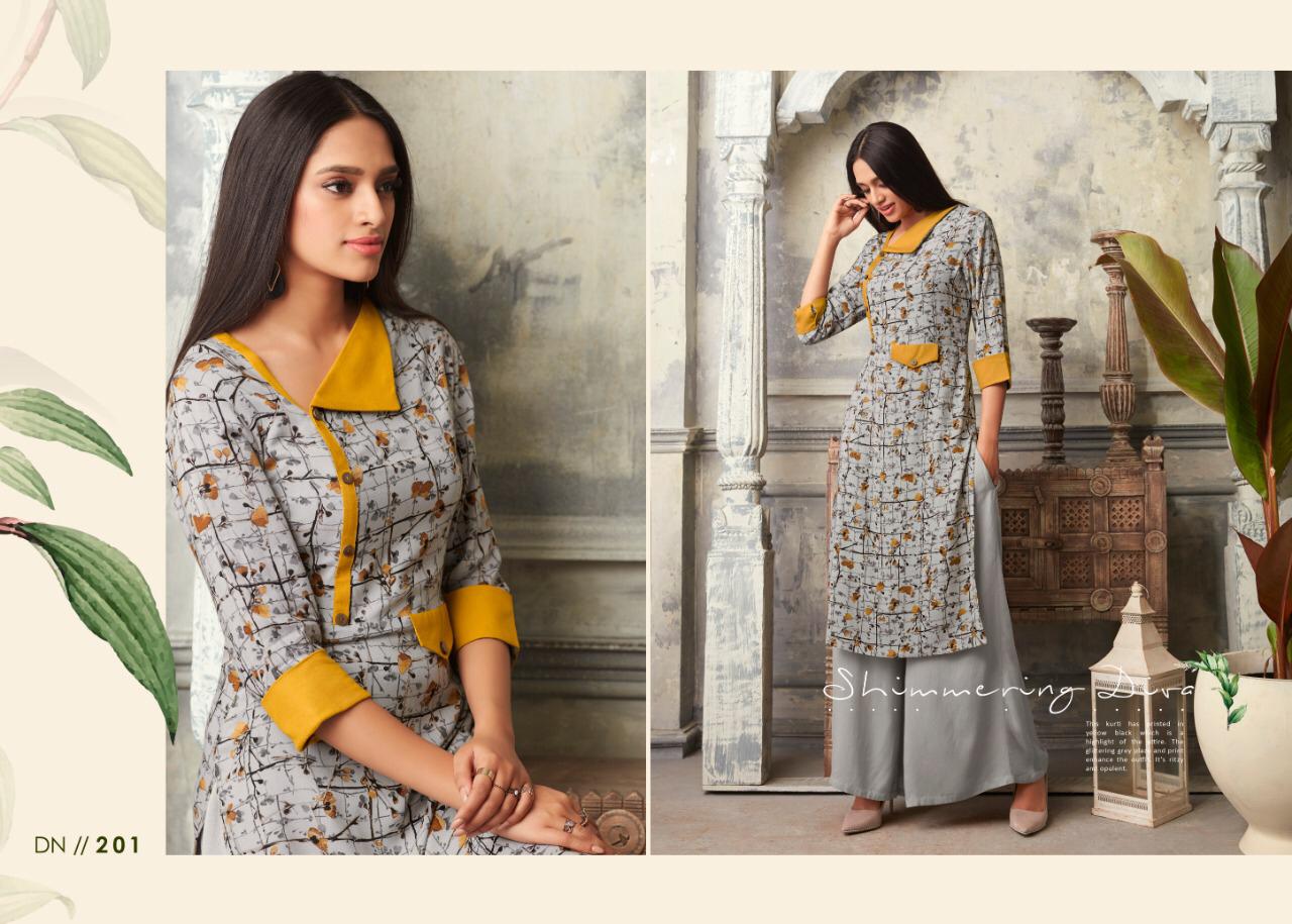 Dusk Vol-5 By Top-dot 201 To 208 Series Stylish Fancy Beautiful Colorful Casual Wear & Ethnic Wear Pure Rayon Printed Kurtis At Wholesale Price