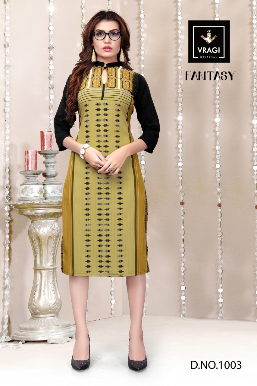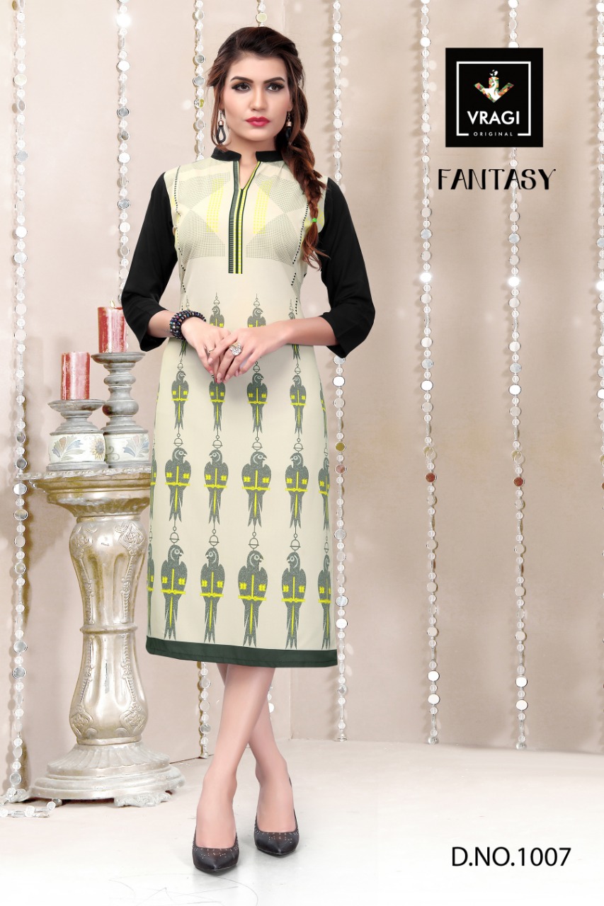 Fantasy By Vragi 1001 To 1008 Series Beautiful Colorful Stylish Fancy Casual Wear & Ethnic Wear & Ready To Wear Royal Crepe Digital Printed Kurtis At Wholesale Price