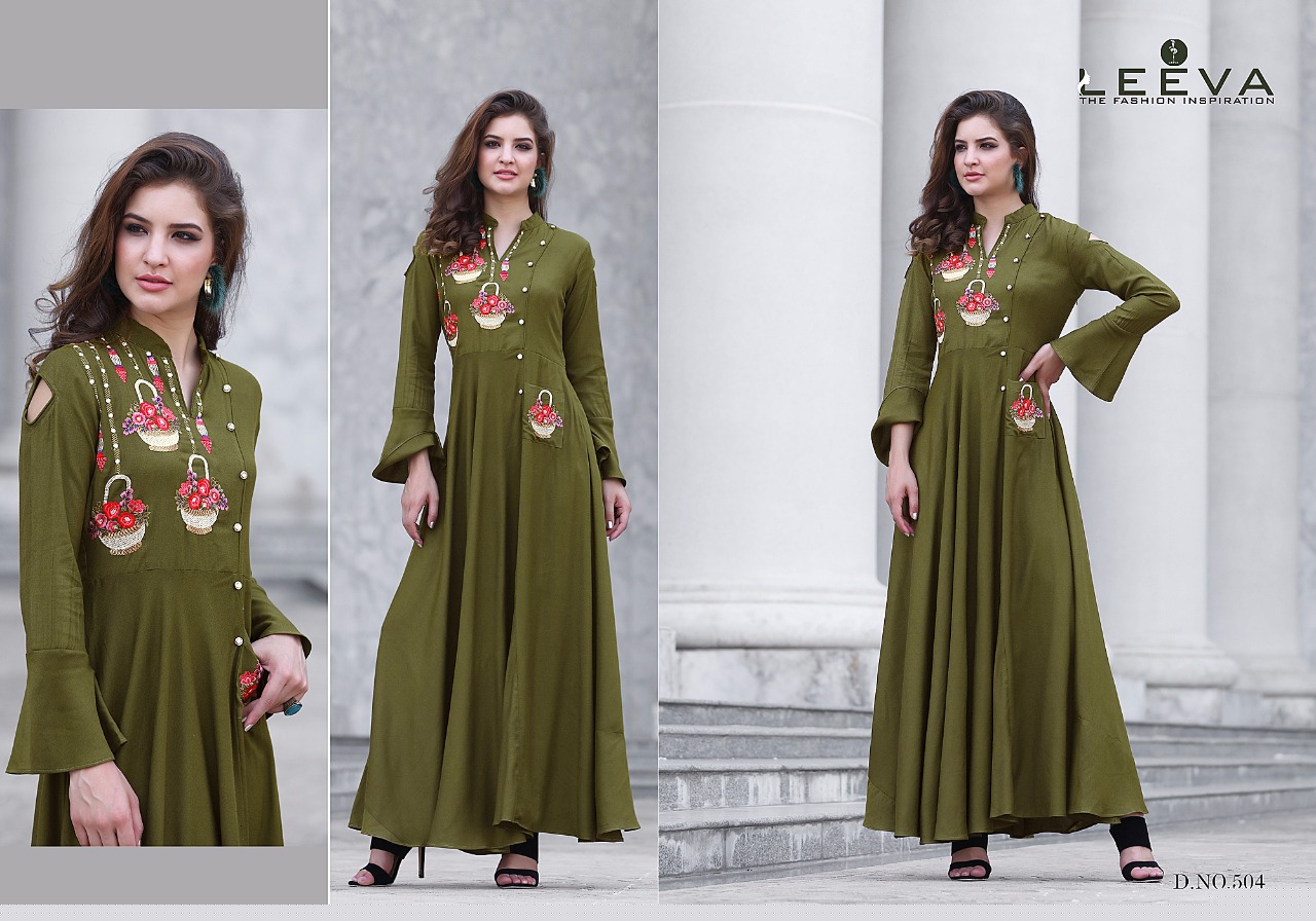Gypsy By Leeva 501 To 508 Series Beautiful Stylish Fancy Colorful Casual Wear & Ethnic Wear Collection Heavy Bombay Rayon Embroidered Kurtis At Wholesale Price