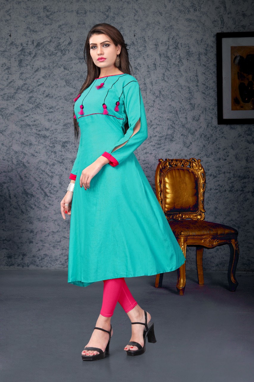 | Other Detail | KURTI FABRIC – HEAVY RAYON FLEX LENGTH – 48-50 INCH. SIZE – M(38),L(40), XL(42) CATALOGUE PRICE – RS.3150/- AVG. PRICE – RS.525/- (GST WILL BE ADDED) |