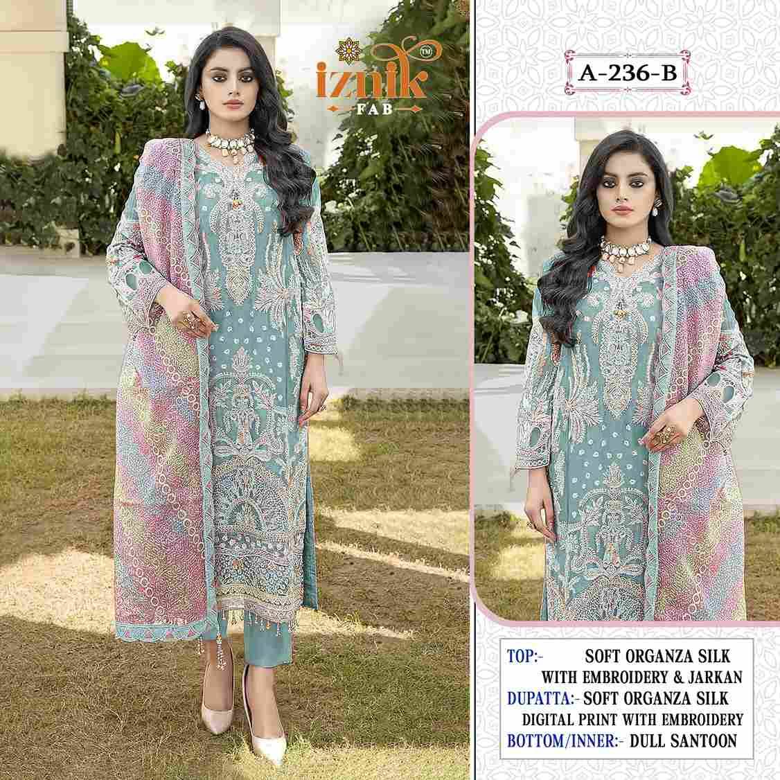 Iznik Hit Design 236-B By Iznik Fab Beautiful Pakistani Suits Colorful Stylish Fancy Casual Wear & Ethnic Wear Organza Silk Embroidered Dresses At Wholesale Price