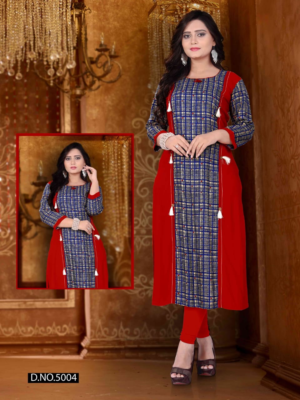 Kulfi Vol-5 By Aarav Collection 5001 To 5008 Series Beautiful Colorful Stylish Fancy Casual Wear & Ethnic Wear & Ready To Wear Pure Rayon Cotton Air-jet Kurtis At Wholesale Price