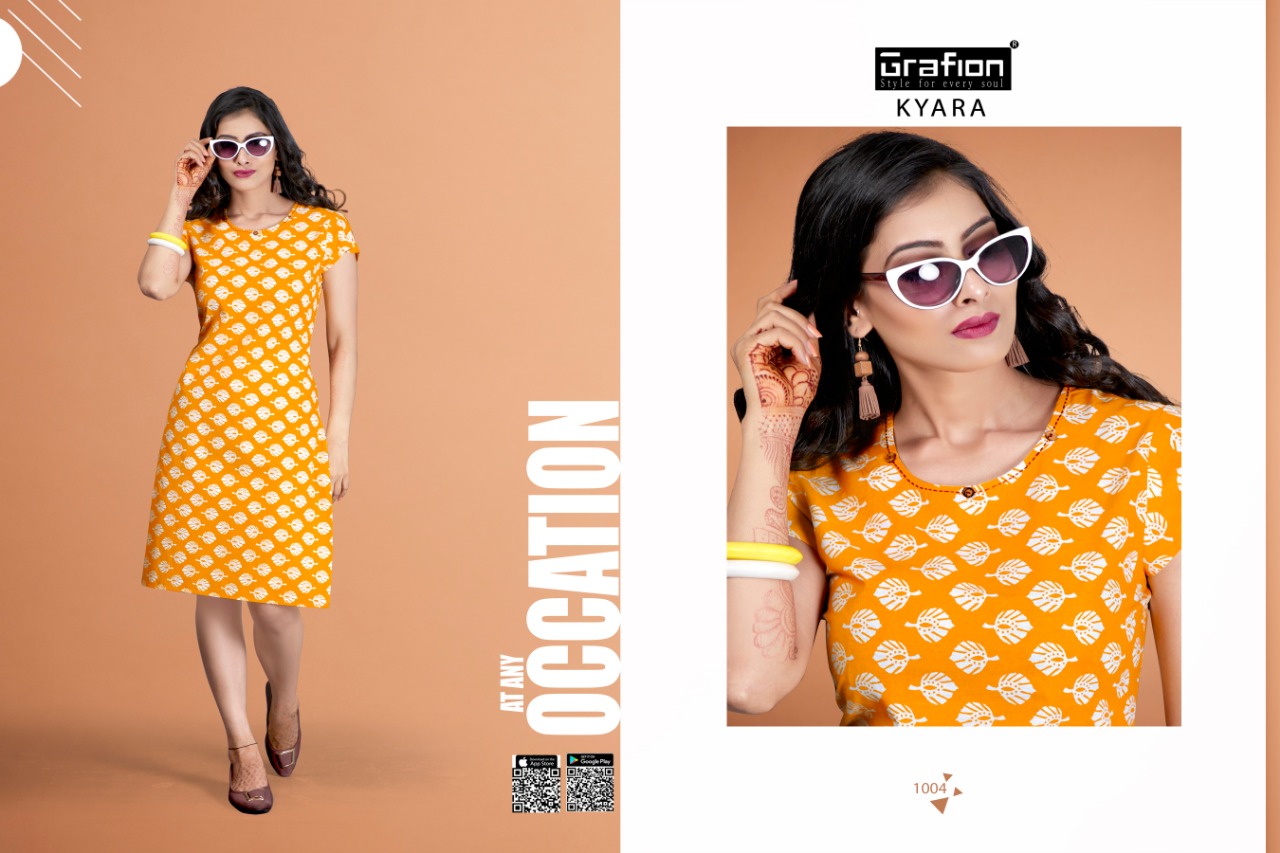 Kyara By Grafion 1001 To 1012 Series Beautiful Stylish Colorful Fancy Casual Wear & Ethnic Wear & Ready To Wear Pure Cotton Printed Kurtis At Wholesale Price