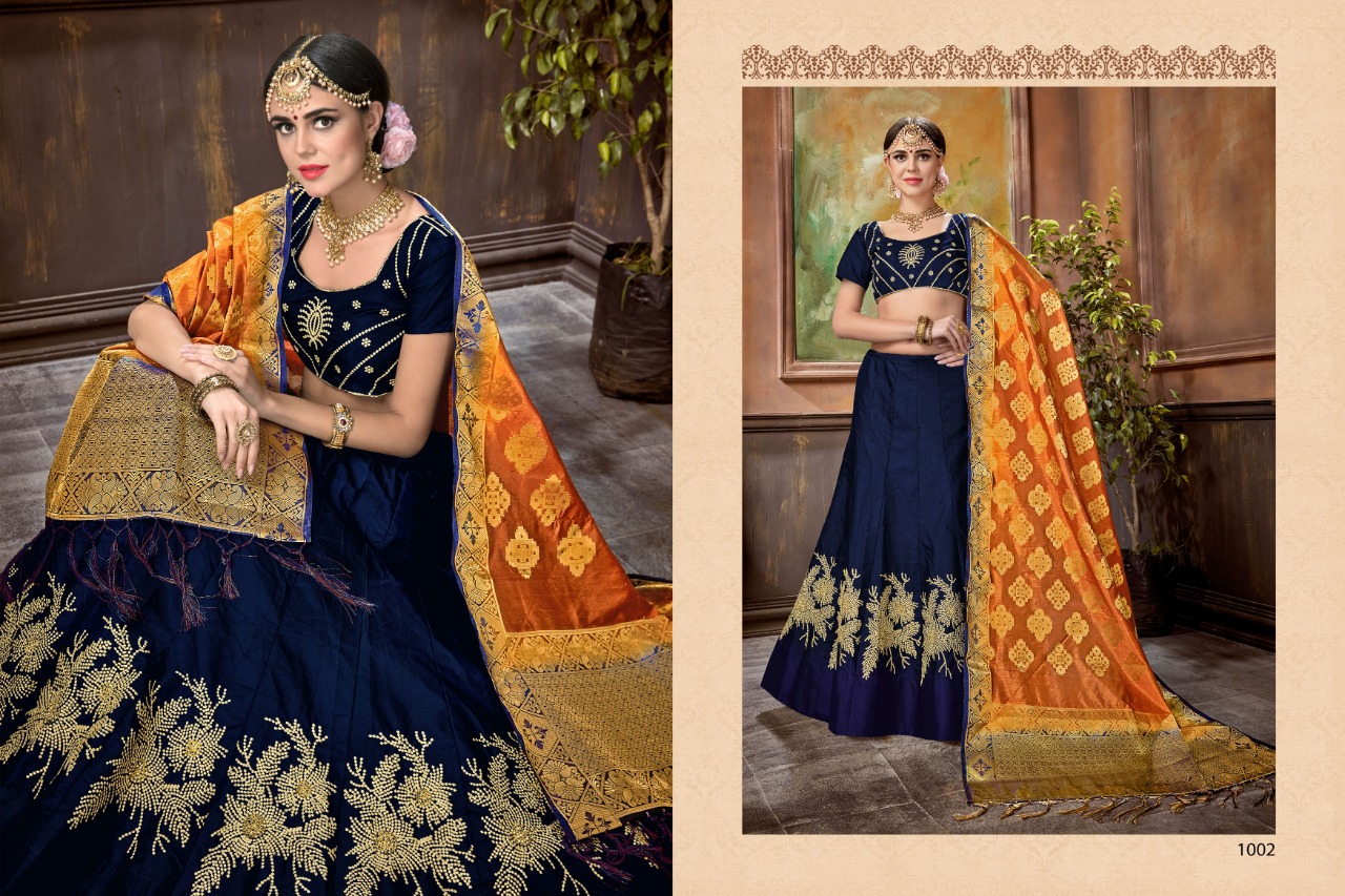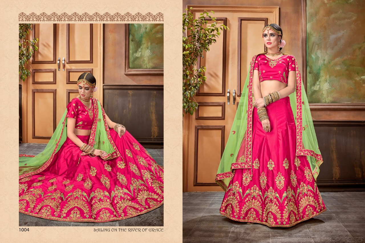 Mangalya By Tejasvee 1001 To 1005 Series Designer Beautiful Wedding Collection Occasional Wear & Party Wear Pure Satin Silk Lehengas At Wholesale Price