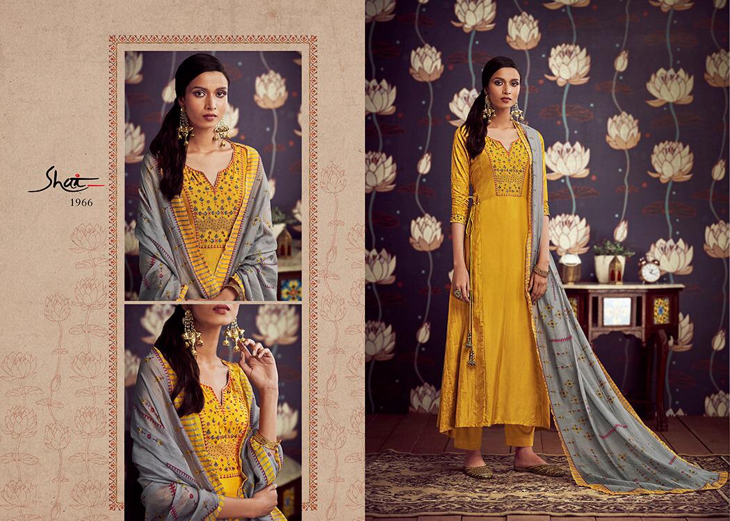 Modesta By Shai 1961 To 1968 Series Beautiful Suits Stylish Colorful Fancy Casual Wear & Ethnic Wear Pure Russian Silk Gold Print With Hand Work Dresses At Wholesale Price