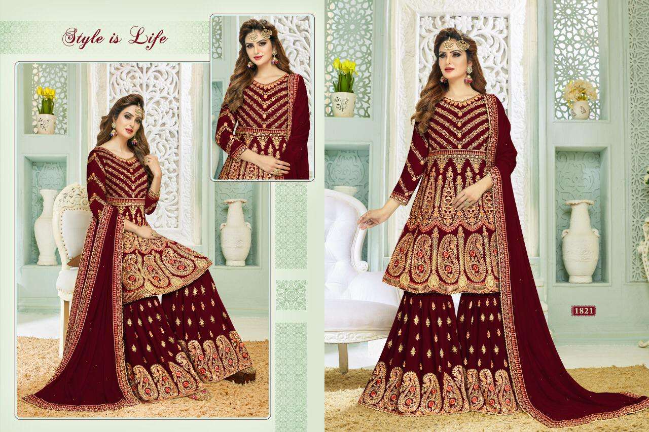 NAZARA VOL-1 BY A M CREATION 1821 TO 1826 SERIES BEAUTIFUL STYLISH SHARARA SUITS FANCY COLORFUL CASUAL WEAR & ETHNIC WEAR & READY TO WEAR FAUX GEORGETTE DRESSES AT WHOLESALE PRICE