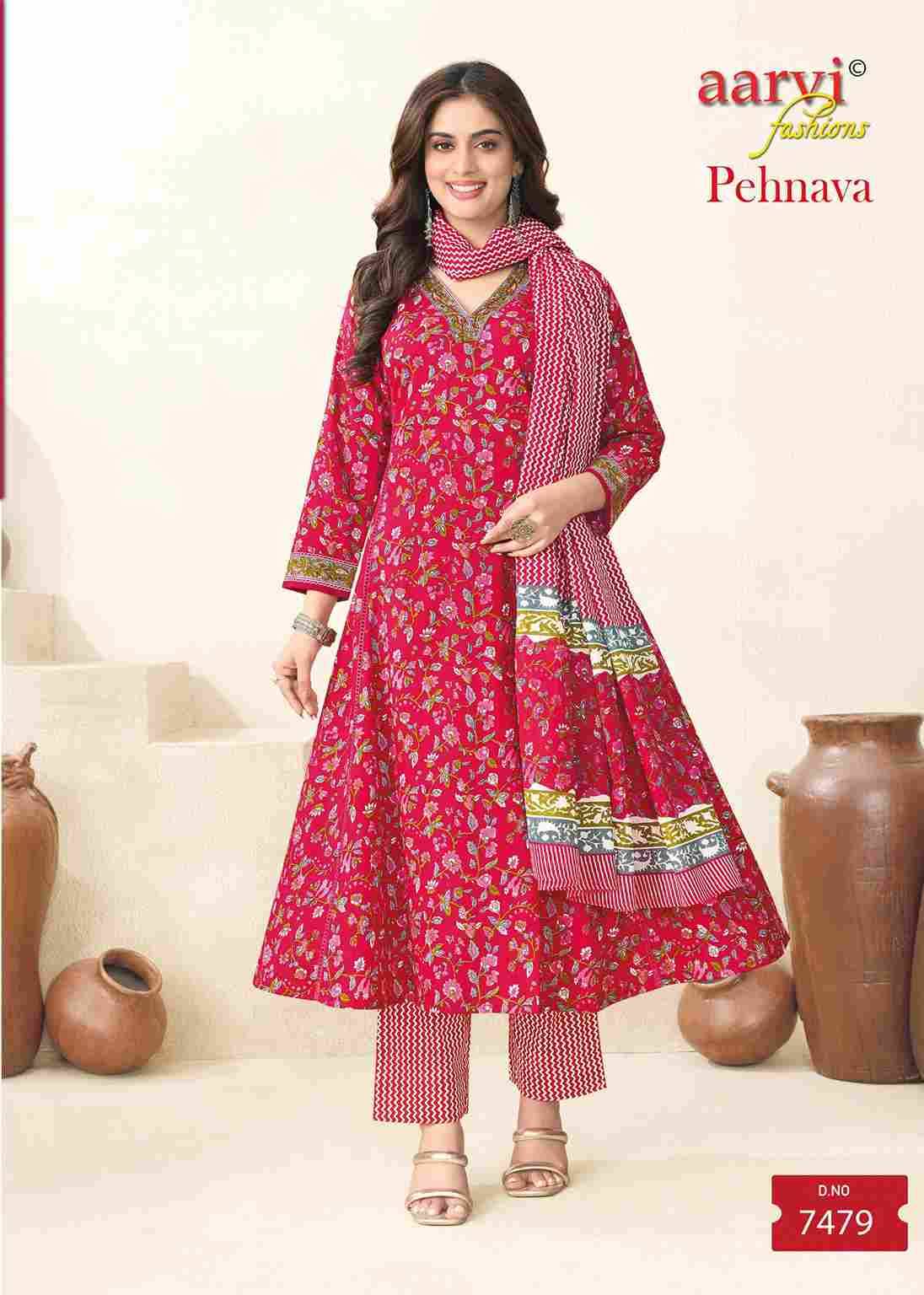 Pehnava Vol-1 By Aarvi Fashion 7479 To 7486 Series Beautiful Stylish Suits Fancy Colorful Casual Wear & Ethnic Wear & Ready To Wear Pure Cotton Printed Dresses At Wholesale Price