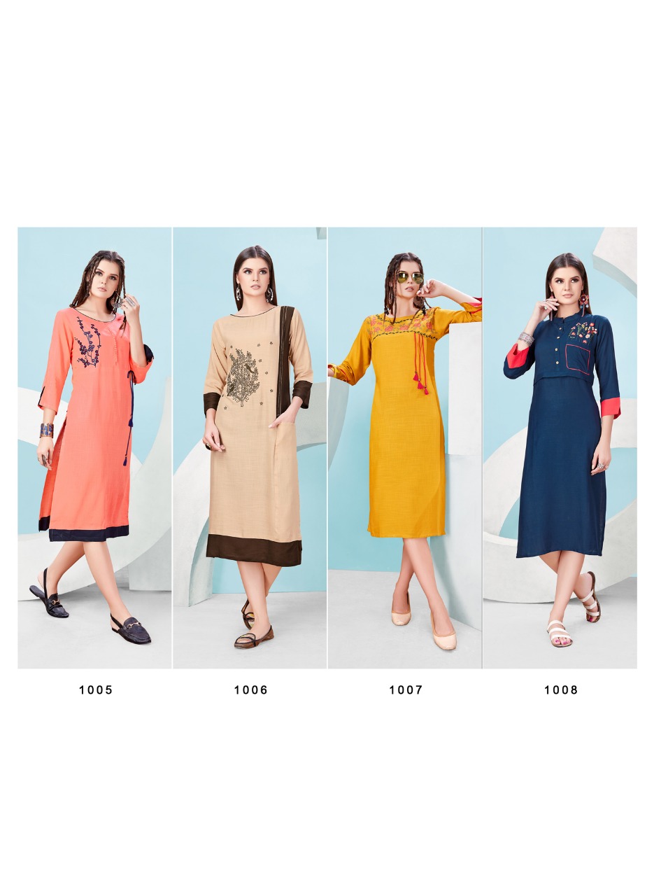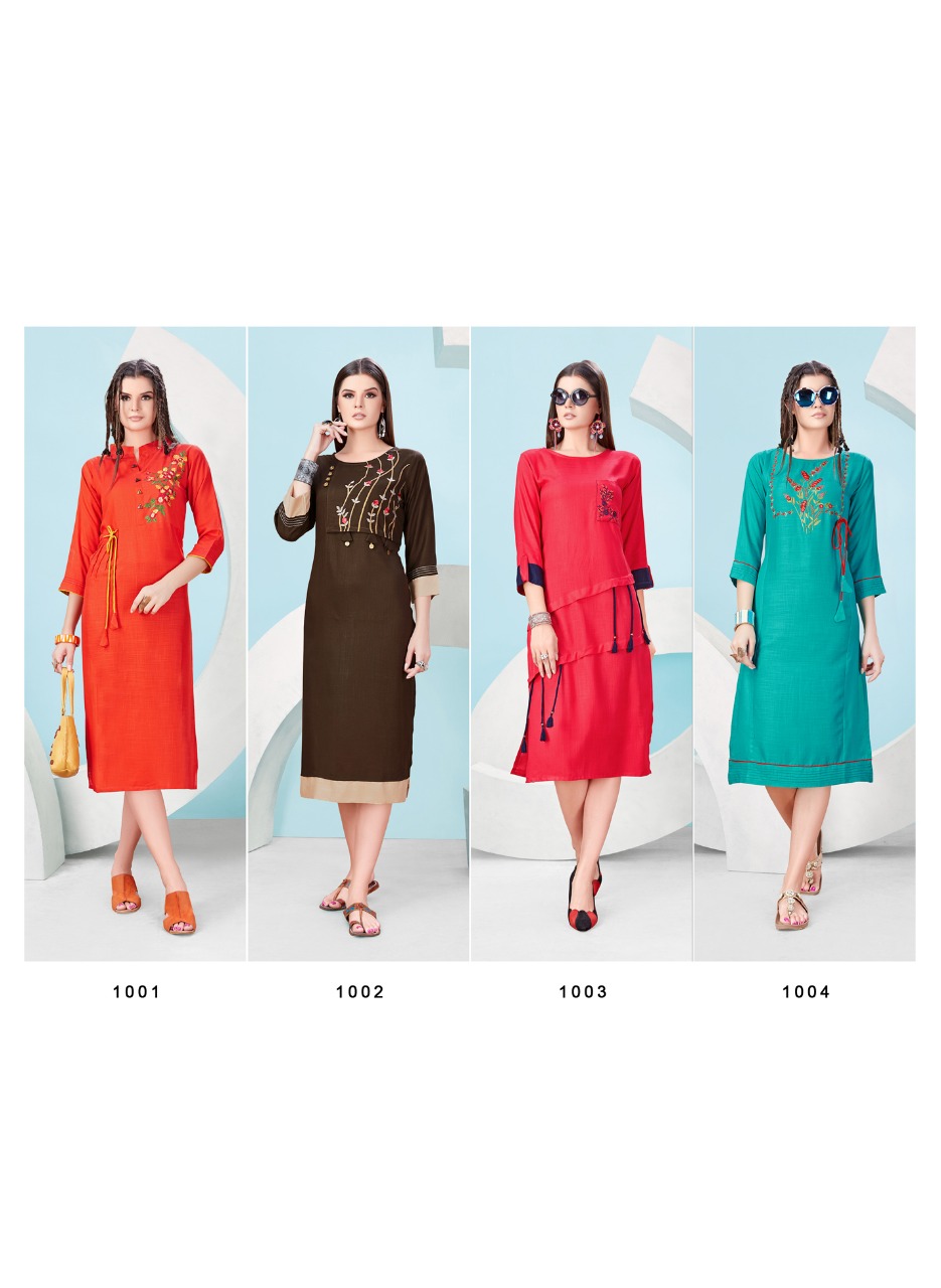 Raag By Shravya Fashion 1001 To 1008 Series Beautiful Stylish Colorful Fancy Party Wear & Ethnic Wear & Ready To Wear Rayon Slub Embroidered Kurtis At Wholesale Price