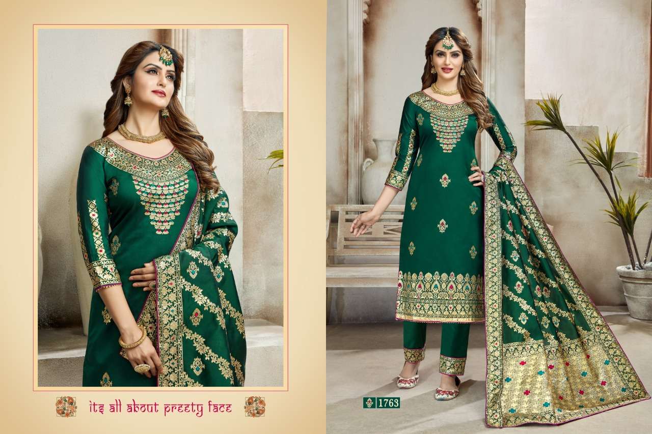 RAJJO VOL-3 BY A.M. CREATION 1761 TO 1766 SERIES BEAUTIFUL SUITS COLORFUL STYLISH FANCY CASUAL WEAR & ETHNIC WEAR JACQUARD SILK DRESSES AT WHOLESALE PRICE